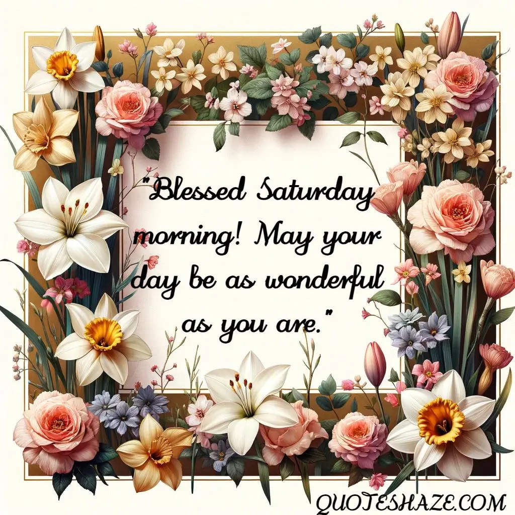 - “Blessed Saturday morning! May your day be as wonderful as you are.”