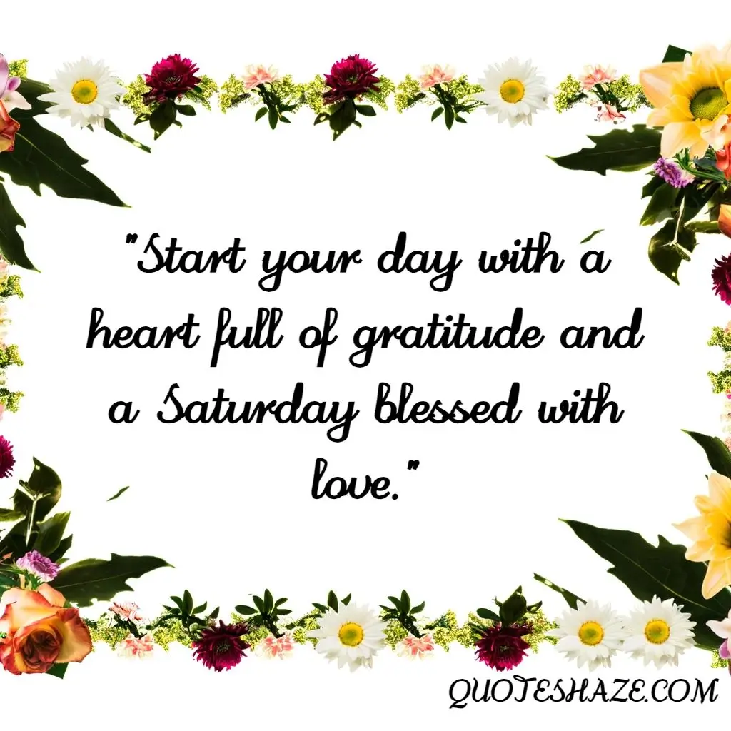 - “Start your day with a heart full of gratitude and a Saturday blessed with love.”