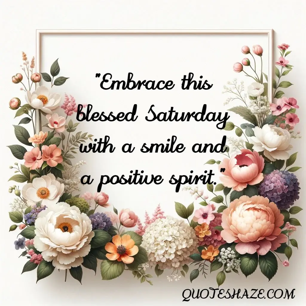- “Embrace this blessed Saturday with a smile and a positive spirit.”