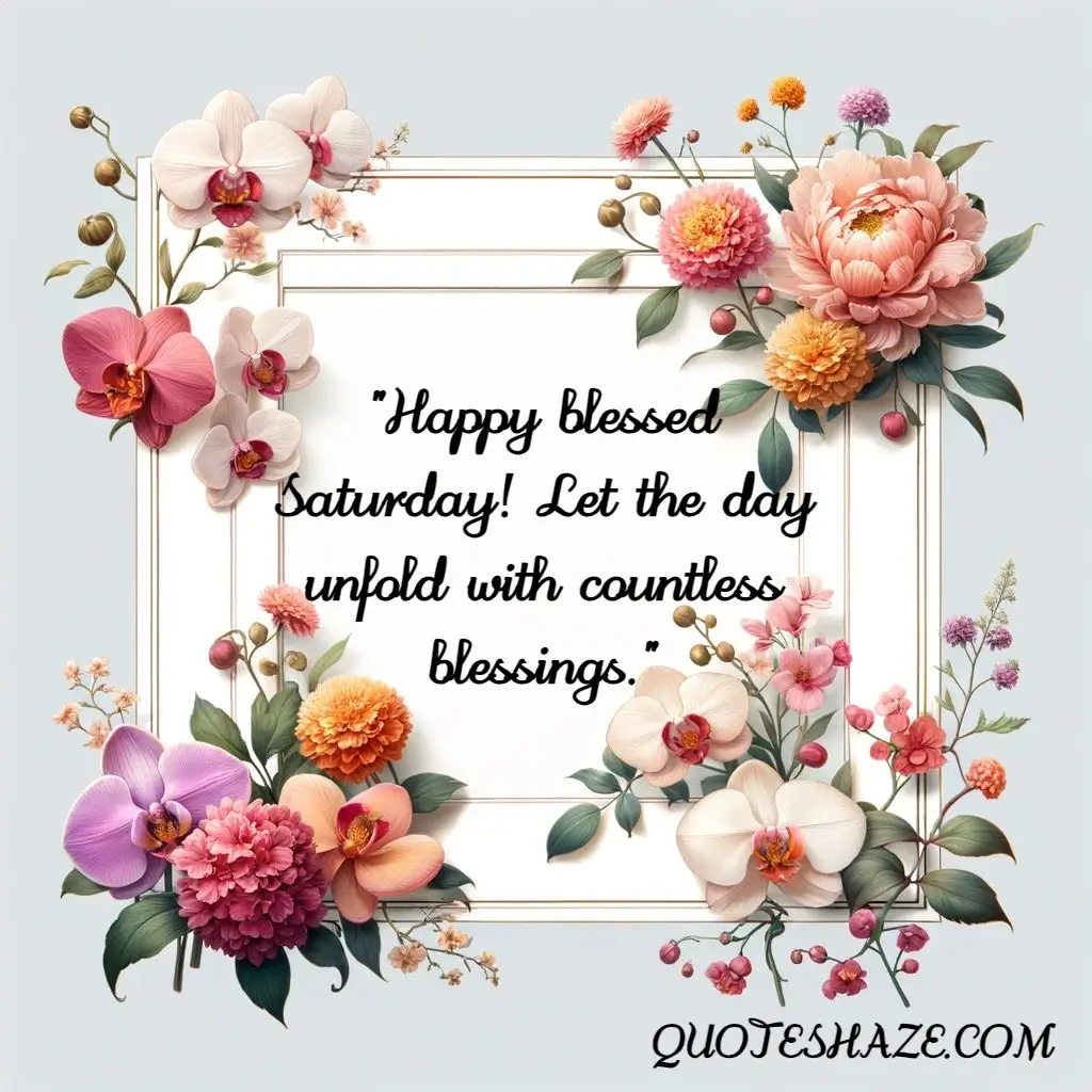 - “Happy blessed Saturday! Let the day unfold with countless blessings.”