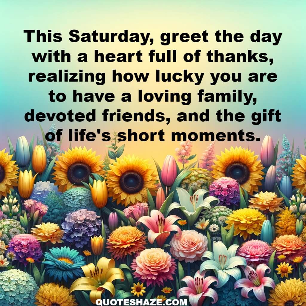 - This Saturday, greet the day with a heart full of thanks, realizing how lucky you are to have a loving family, devoted friends, and the gift of life’s short moments.