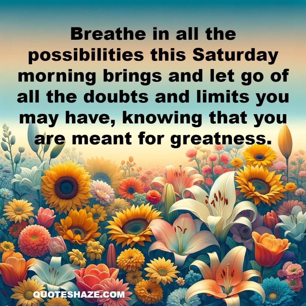 - This Saturday morning, embrace the possibility of a new beginning by letting go of the past and embracing a day full with opportunities.