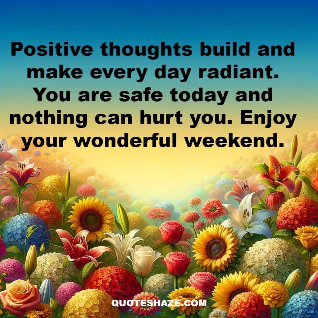 - Positive thoughts build and make every day radiant. You are safe today and nothing can hurt you. Enjoy your wonderful weekend.