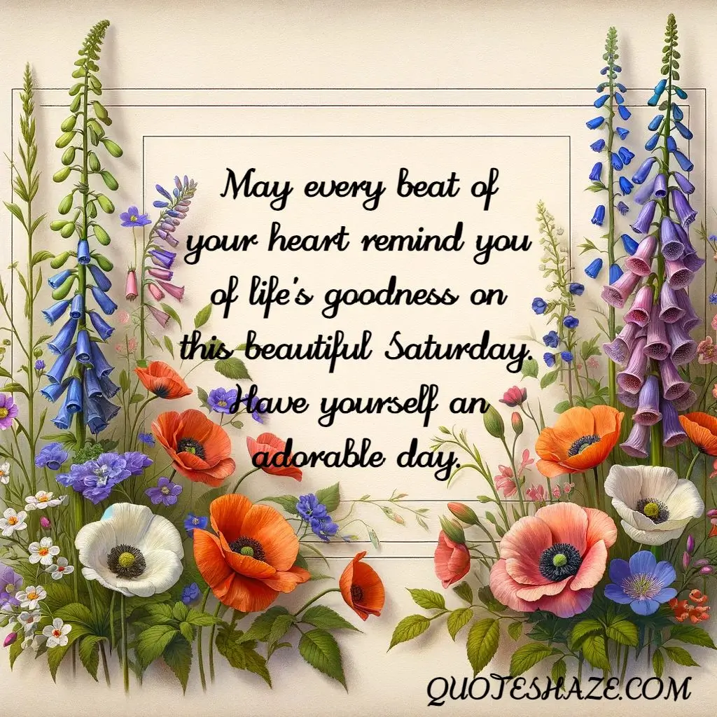 - May every beat of your heart remind you of life’s goodness on this beautiful Saturday. Have yourself an adorable day.