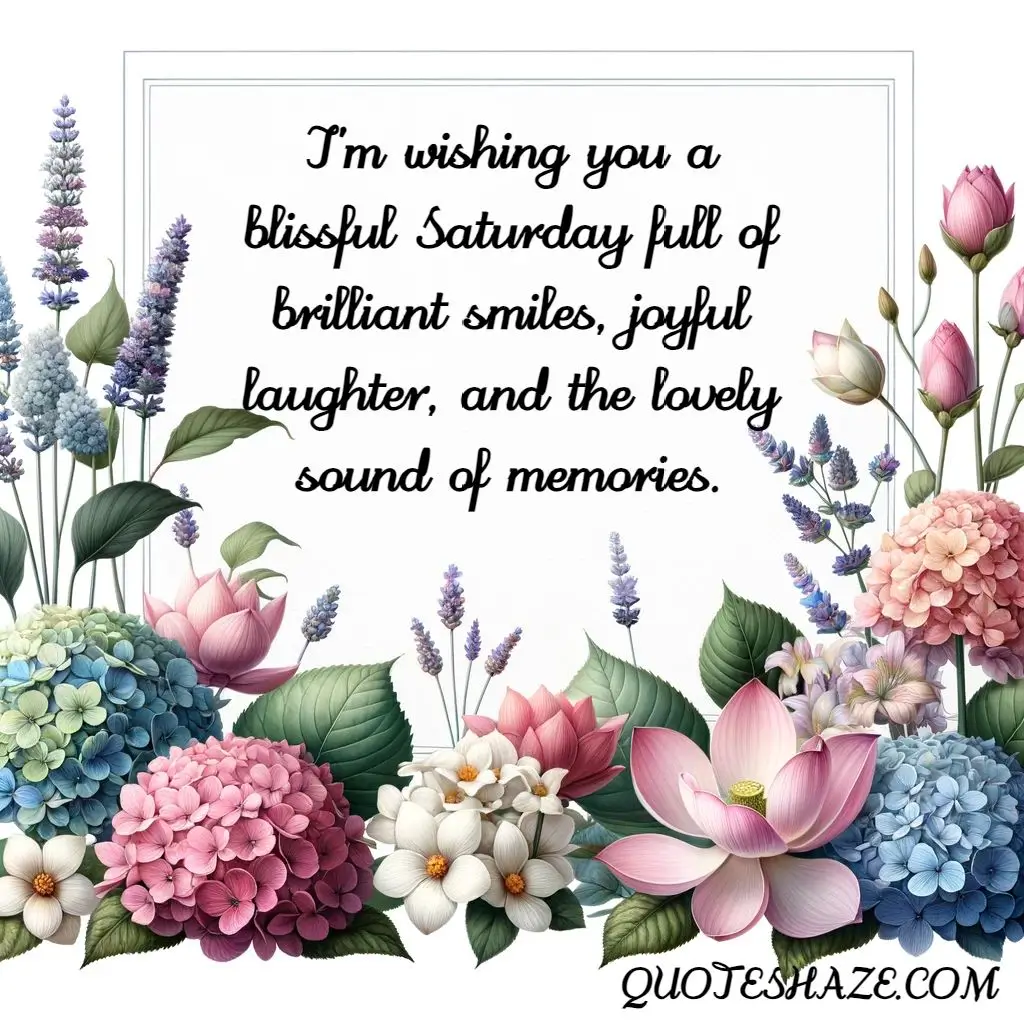 - I’m wishing you a blissful Saturday full of brilliant smiles, joyful laughter, and the lovely sound of memories.