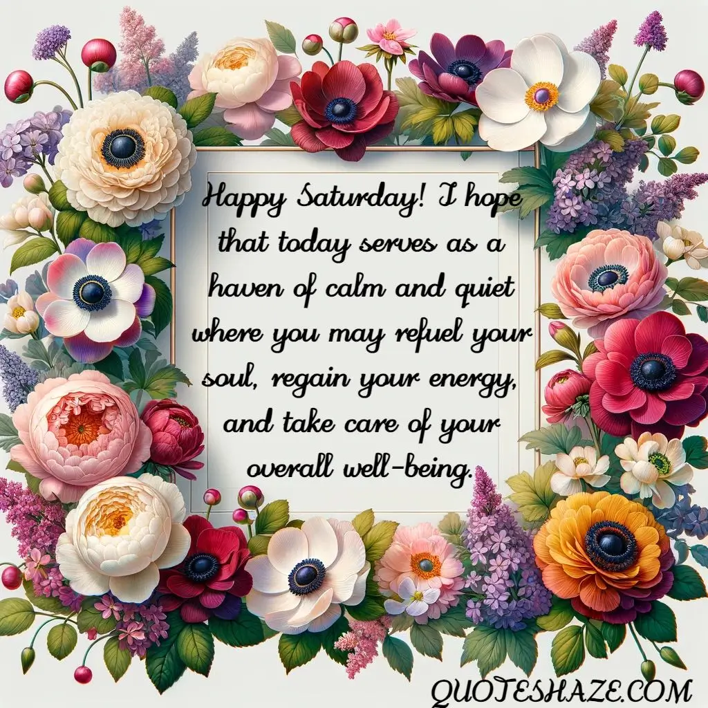- Happy Saturday! I hope that today serves as a haven of calm and quiet where you may refuel your soul, regain your energy, and take care of your overall well-being.
