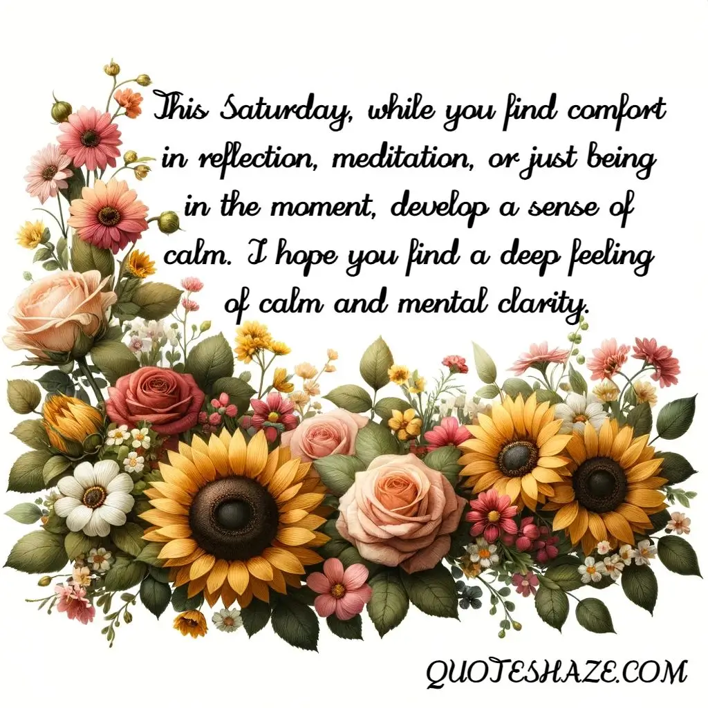 - This Saturday, while you find comfort in reflection, meditation, or just being in the moment, develop a sense of calm. I hope you find a deep feeling of calm and mental clarity.