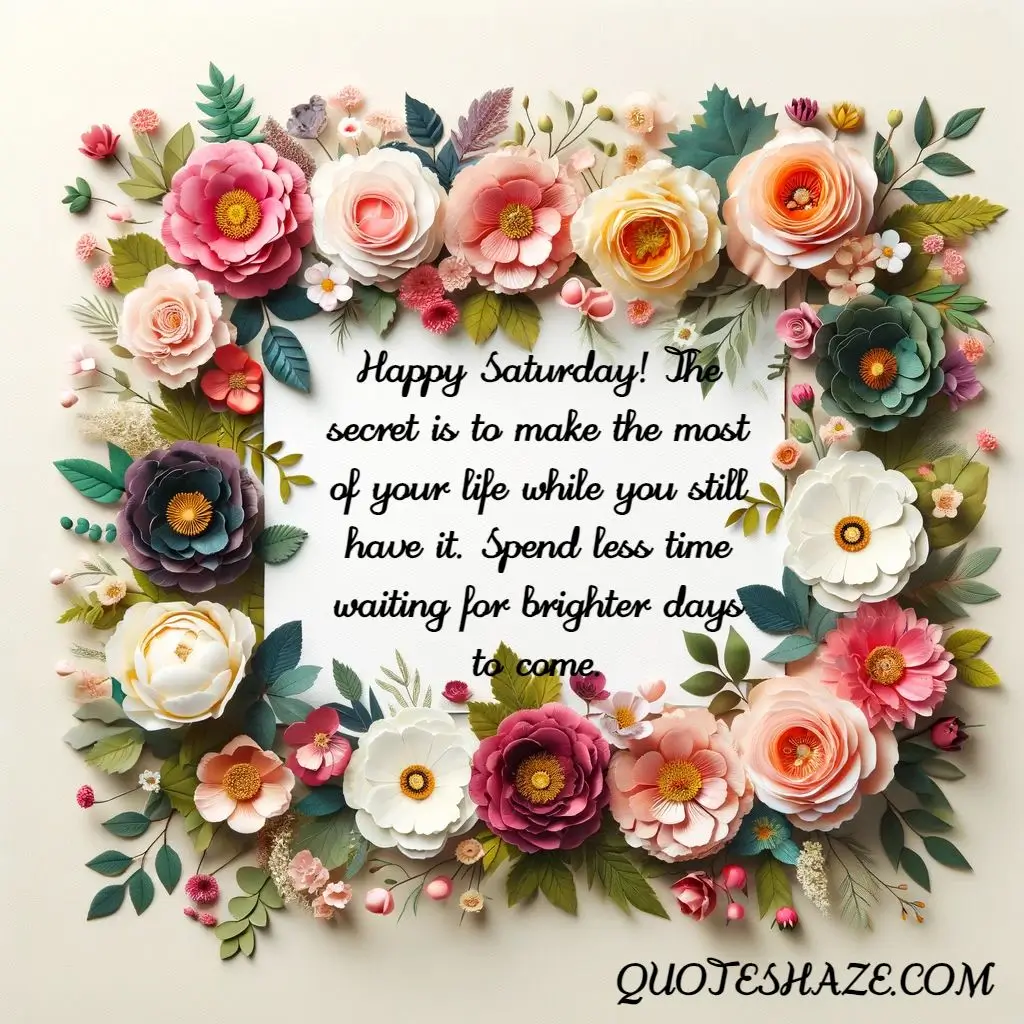 - Happy Saturday! The secret is to make the most of your life while you still have it. Spend less time waiting for brighter days to come.
