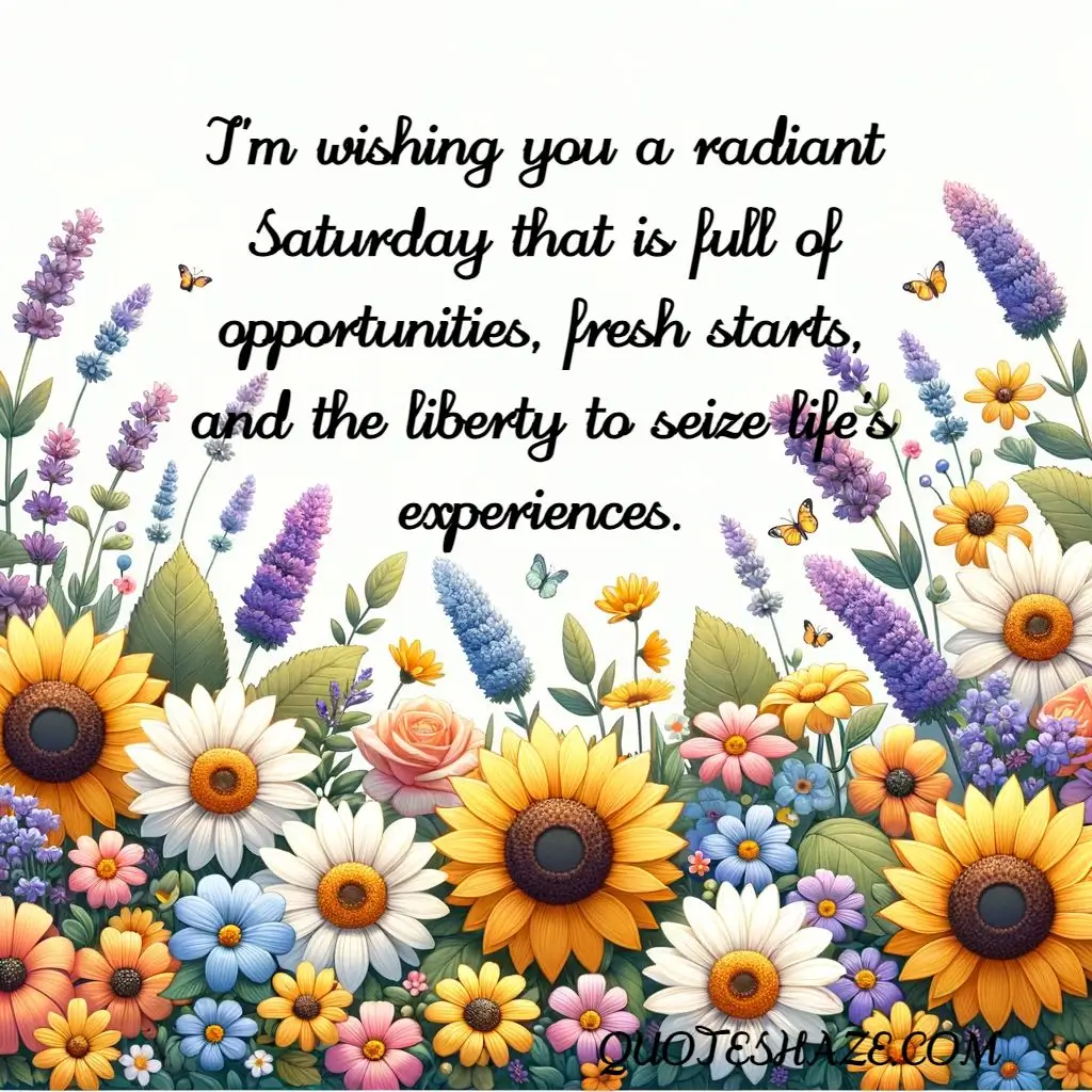 - I’m wishing you a radiant Saturday that is full of opportunities, fresh starts, and the liberty to seize life’s experiences.