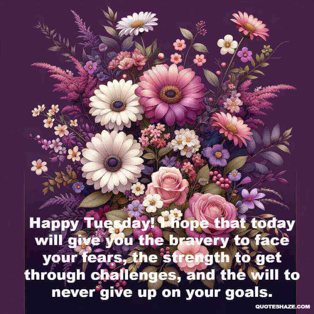 - Happy Tuesday! I hope that today will give you the bravery to face your fears, the strength to get through challenges, and the will to never give up on your goals.