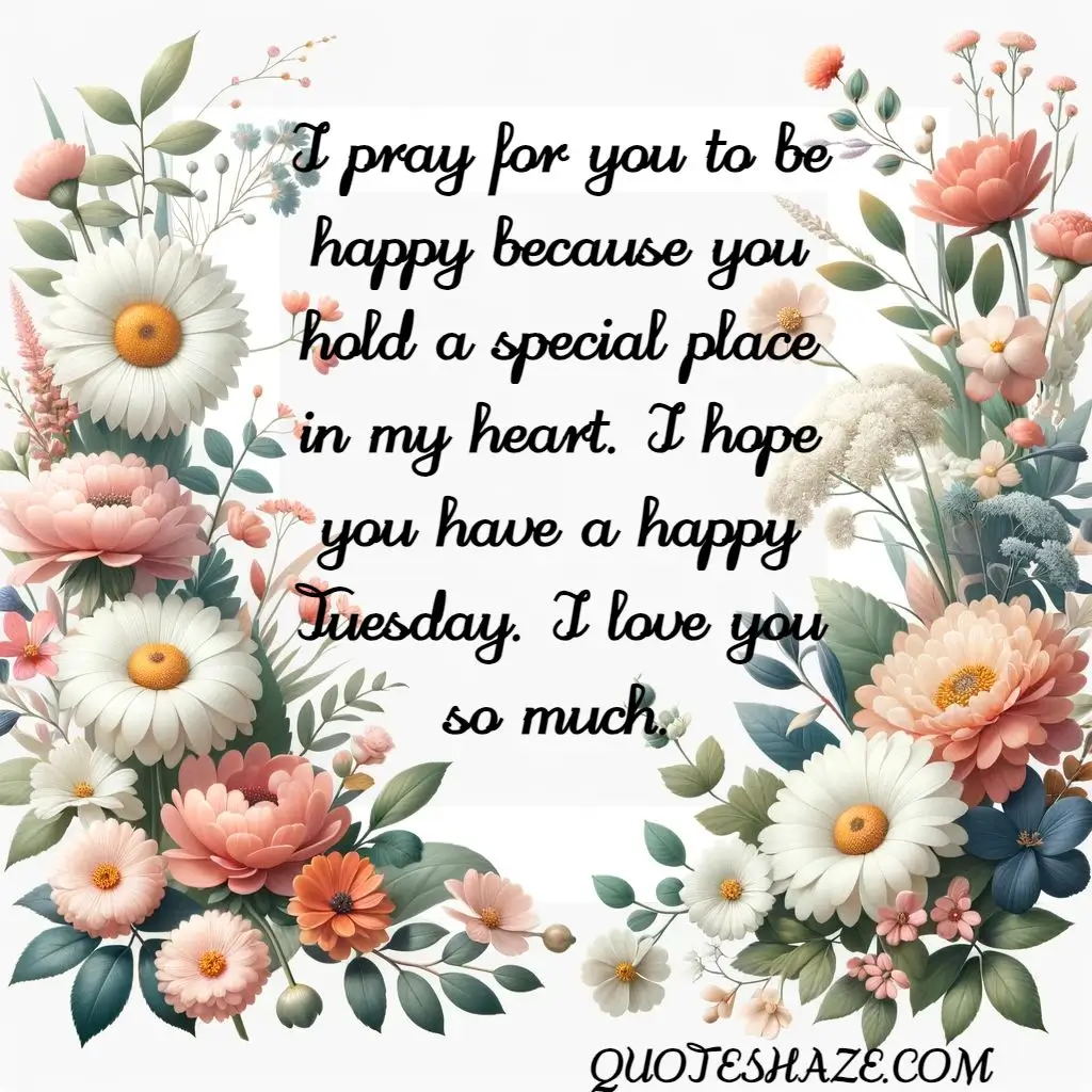 - I pray for you to be happy because you hold a special place in my heart. I hope you have a happy Tuesday. I love you so much.