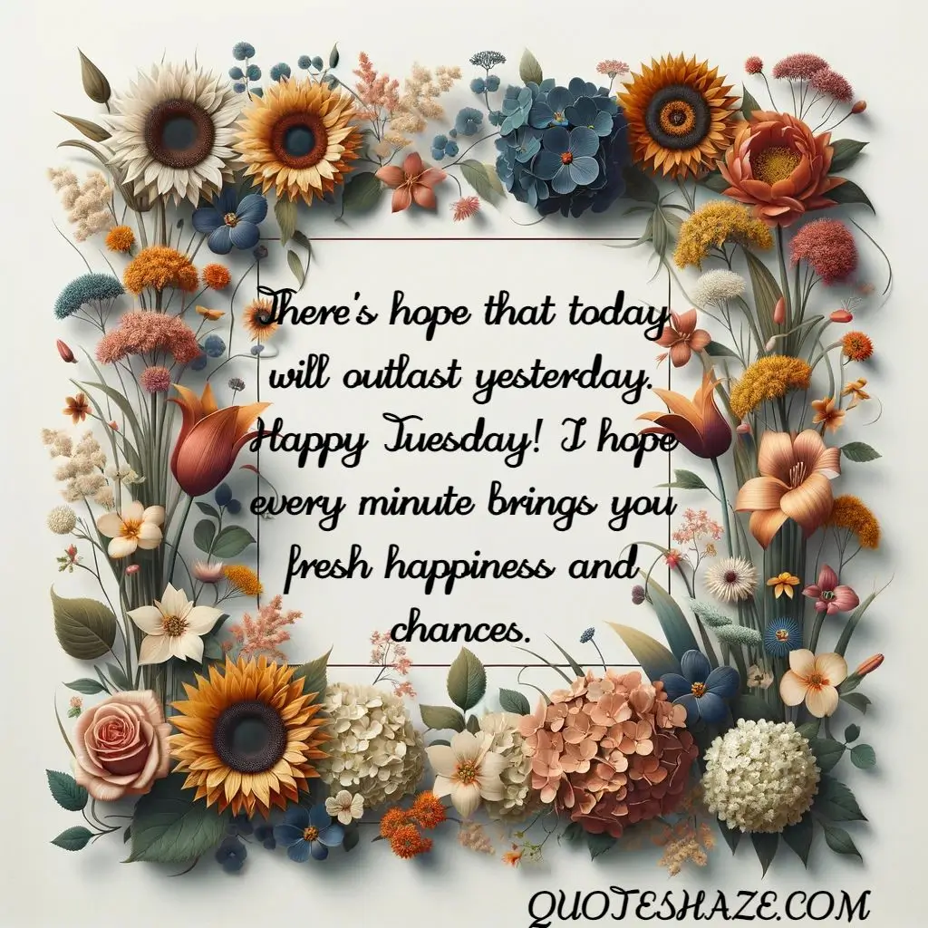 - There’s hope that today will outlast yesterday. Happy Tuesday! I hope every minute brings you fresh happiness and chances.