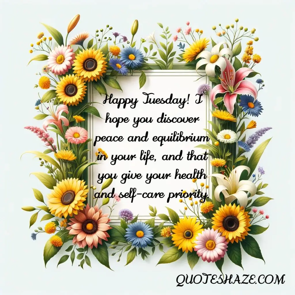 - Happy Tuesday! I hope you discover peace and equilibrium in your life, and that you give your health and self-care priority.