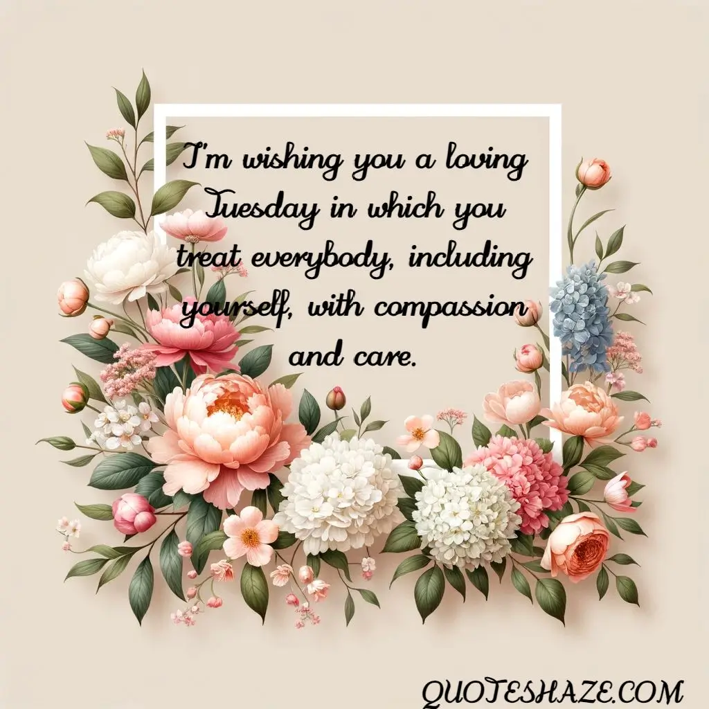 - I’m wishing you a loving Tuesday in which you treat everybody, including yourself, with compassion and care.