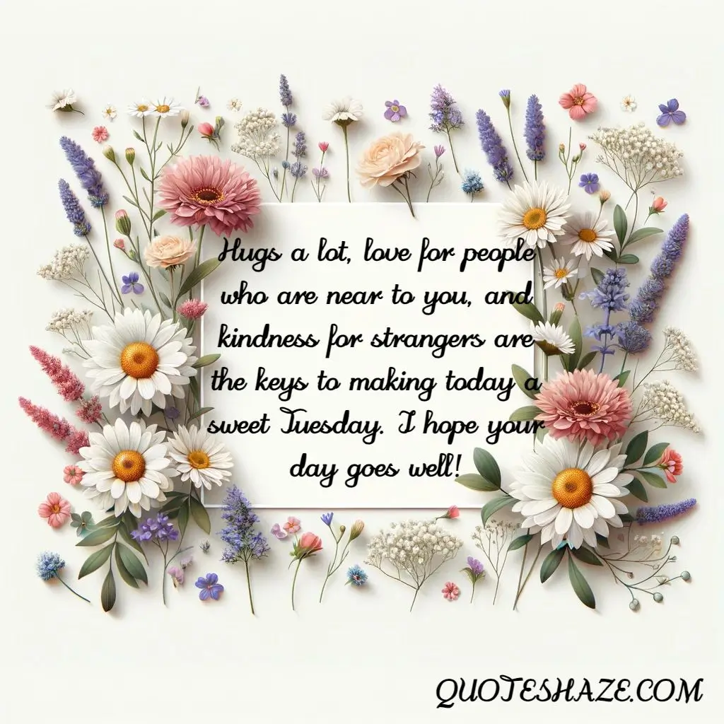 - Hugs a lot, love for people who are near to you, and kindness for strangers are the keys to making today a sweet Tuesday. I hope your day goes well!