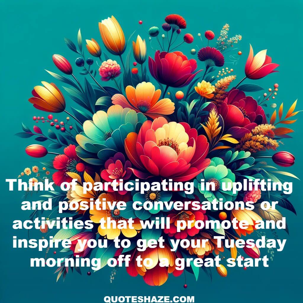 - Think of participating in uplifting and positive conversations or activities that will promote and inspire you to get your Tuesday morning off to a great start.