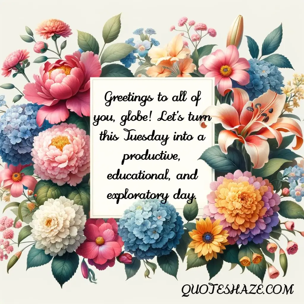 - Greetings to all of you, globe! Let’s turn this Tuesday into a productive, educational, and exploratory day.