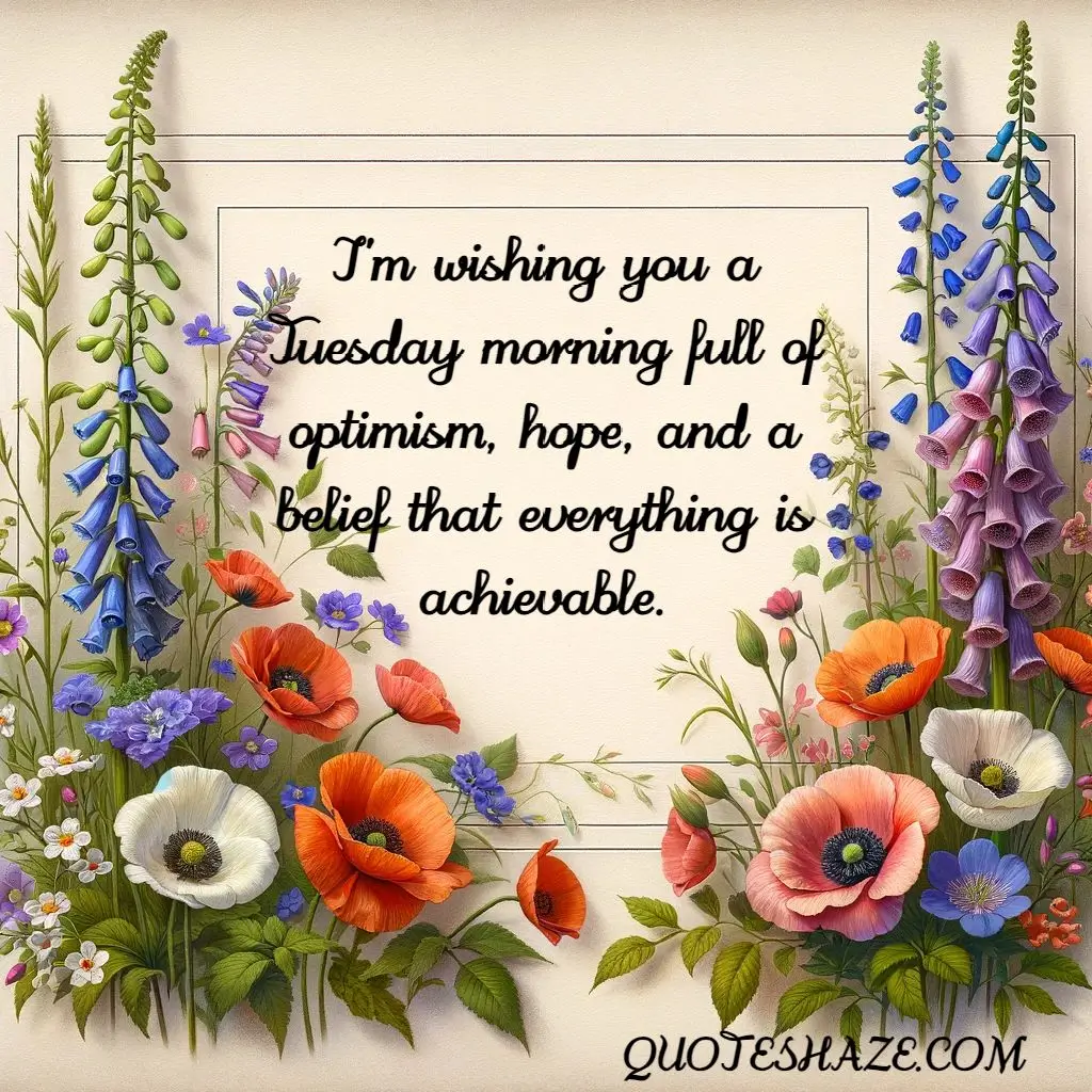 - I’m wishing you a Tuesday morning full of optimism, hope, and a belief that everything is achievable.