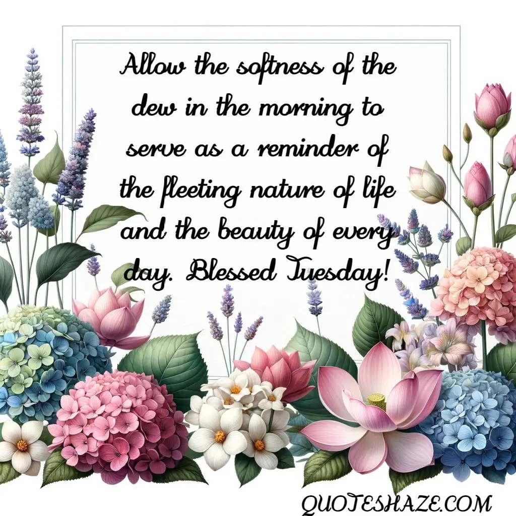 - Allow the softness of the dew in the morning to serve as a reminder of the fleeting nature of life and the beauty of every day. Blessed Tuesday!