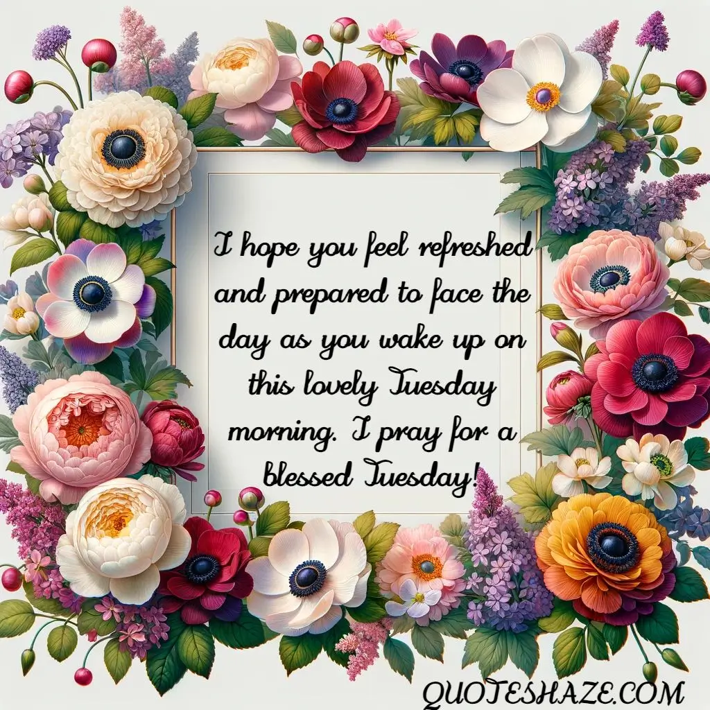 - I hope you feel refreshed and prepared to face the day as you wake up on this lovely Tuesday morning. I pray for a blessed Tuesday!