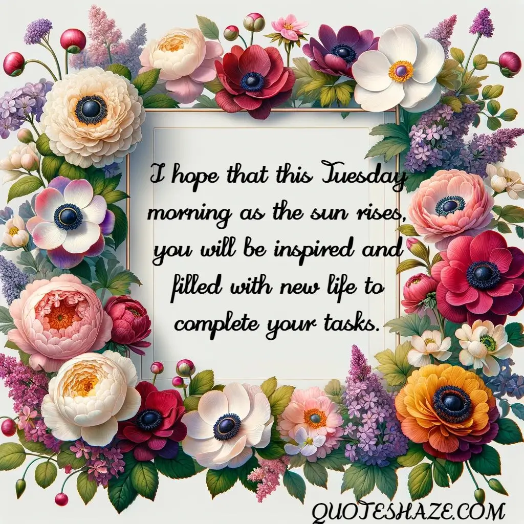 - I hope that this Tuesday morning as the sun rises, you will be inspired and filled with new life to complete your tasks.