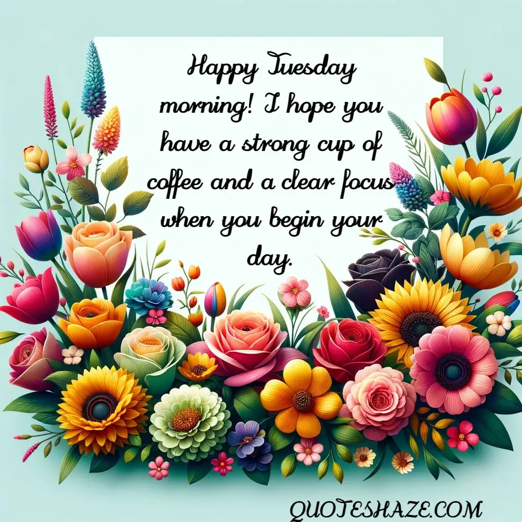 - “Good Morning Tuesday! Wishing you a blooming great day!”