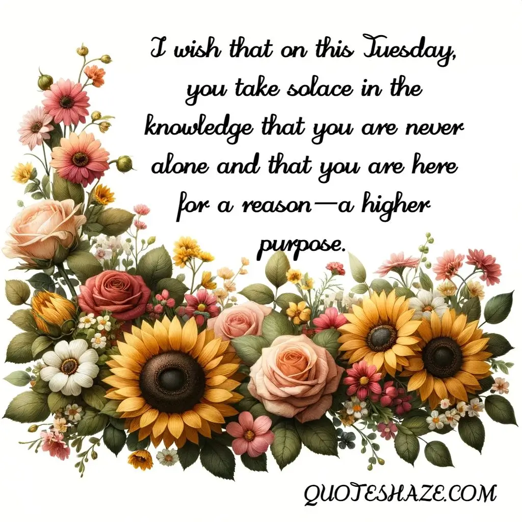 - I wish that on this Tuesday, you take solace in the knowledge that you are never alone and that you are here for a reason—a higher purpose.