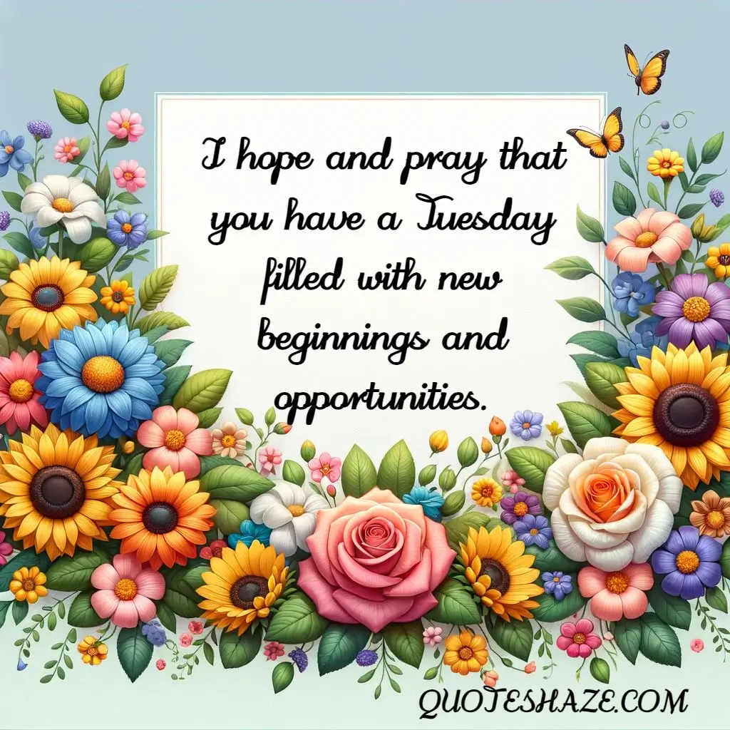 - I hope and pray that you have a Tuesday filled with new beginnings and opportunities.