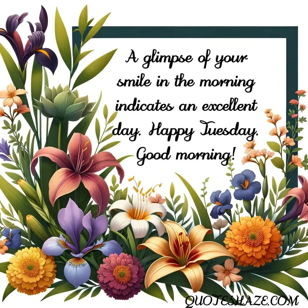 - A glimpse of your smile in the morning indicates an excellent day. Happy Tuesday. Good morning!