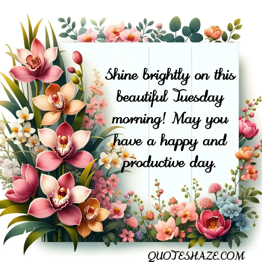 - Shine brightly on this beautiful Tuesday morning! May you have a happy and productive day.