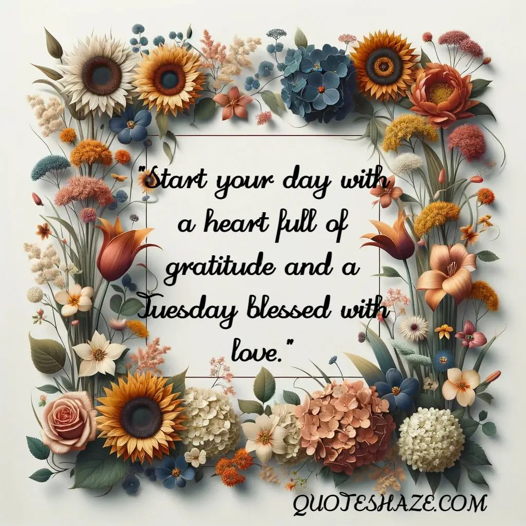 - “Start your day with a heart full of gratitude and a Tuesday blessed with love.”