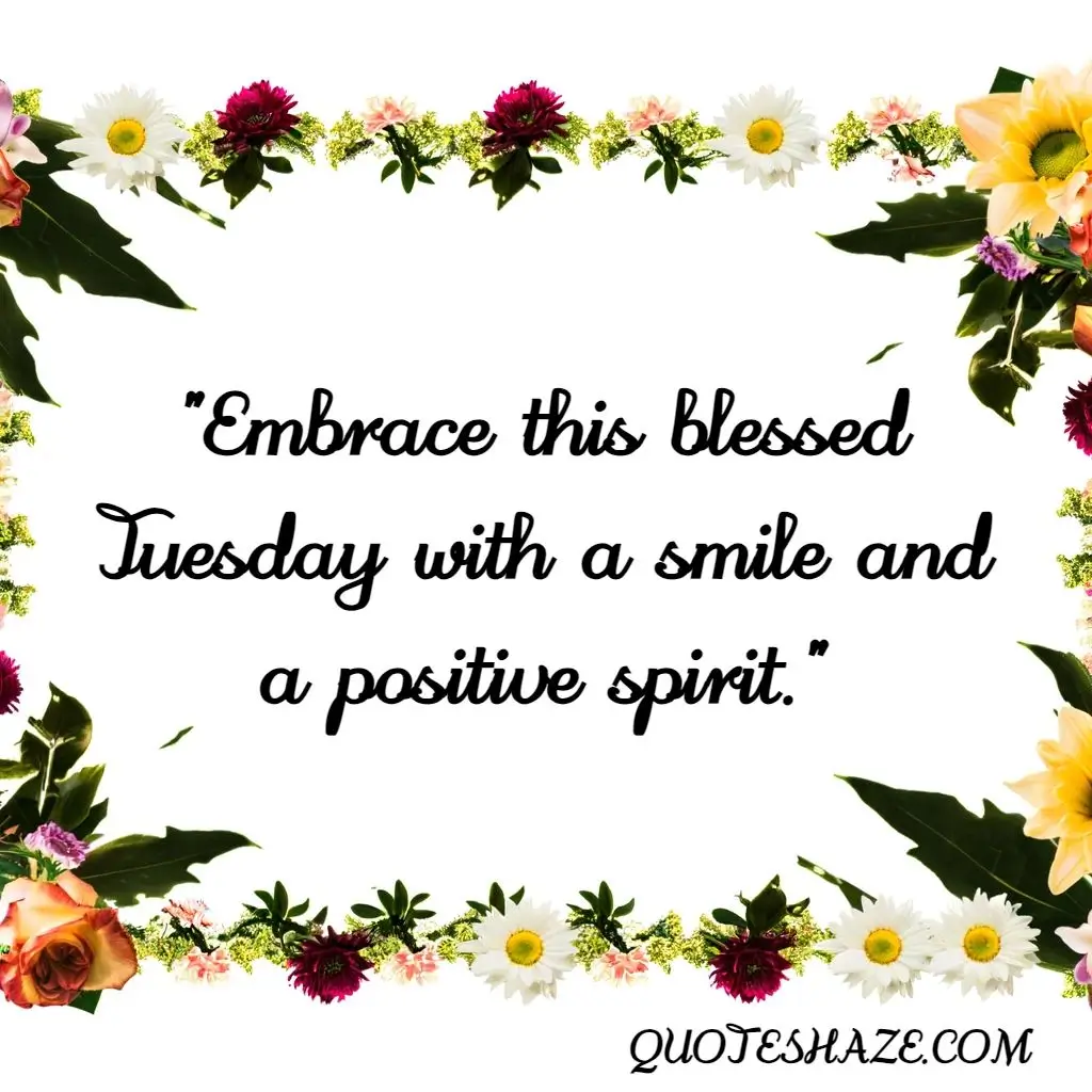 - “Embrace this blessed Tuesday with a smile and a positive spirit.”