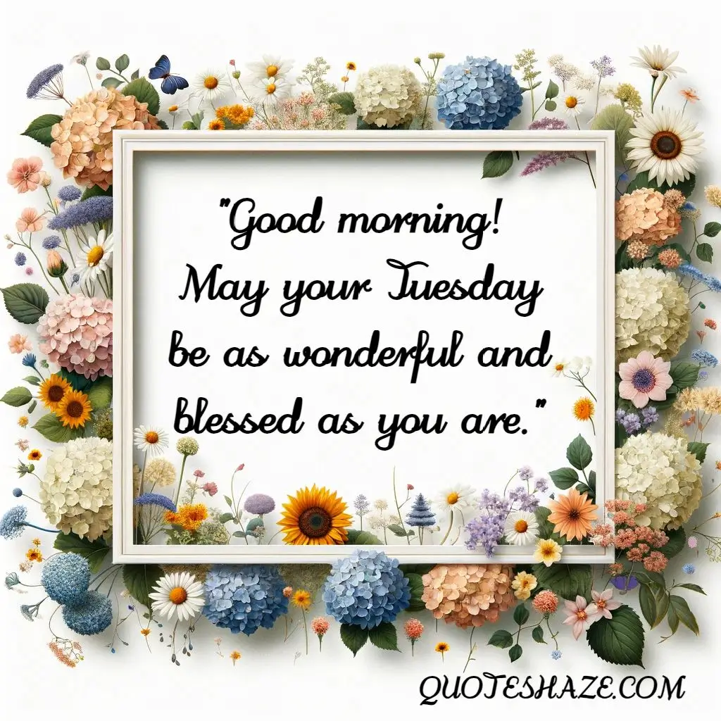 - “Wishing you a Tuesday morning filled with blessings and beautiful moments.”