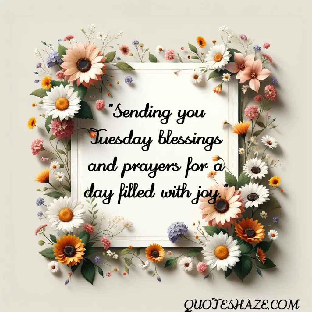 - “Sending you Tuesday blessings and prayers for a day filled with joy.”