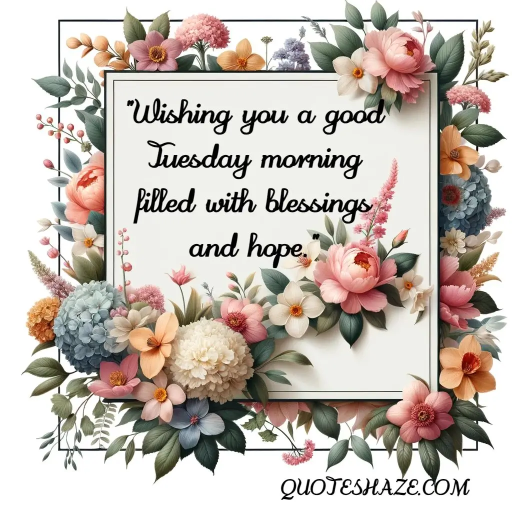 - “Wishing you a good Tuesday morning filled with blessings and hope.”