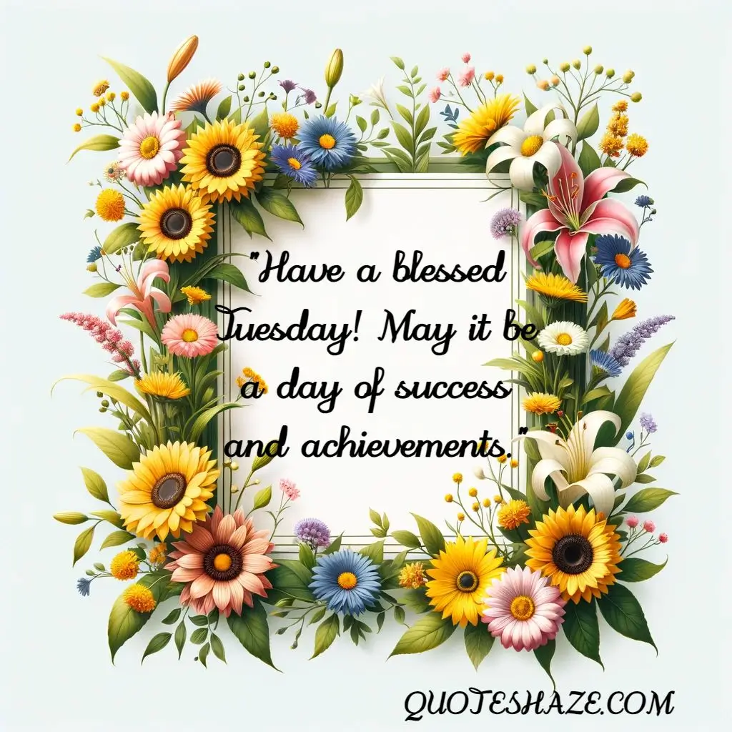 - “Have a blessed Tuesday! May it be a day of success and achievements.”