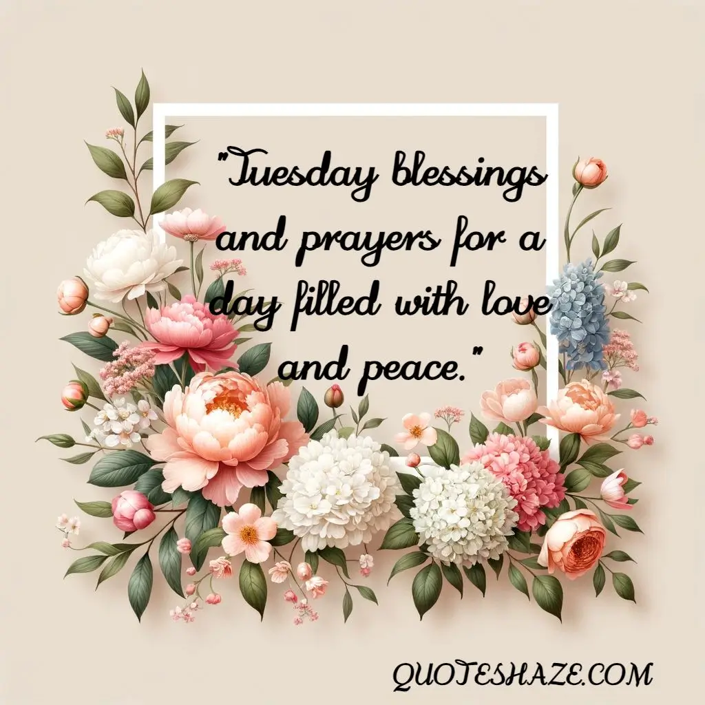 - “Tuesday blessings and prayers for a day filled with love and peace.”