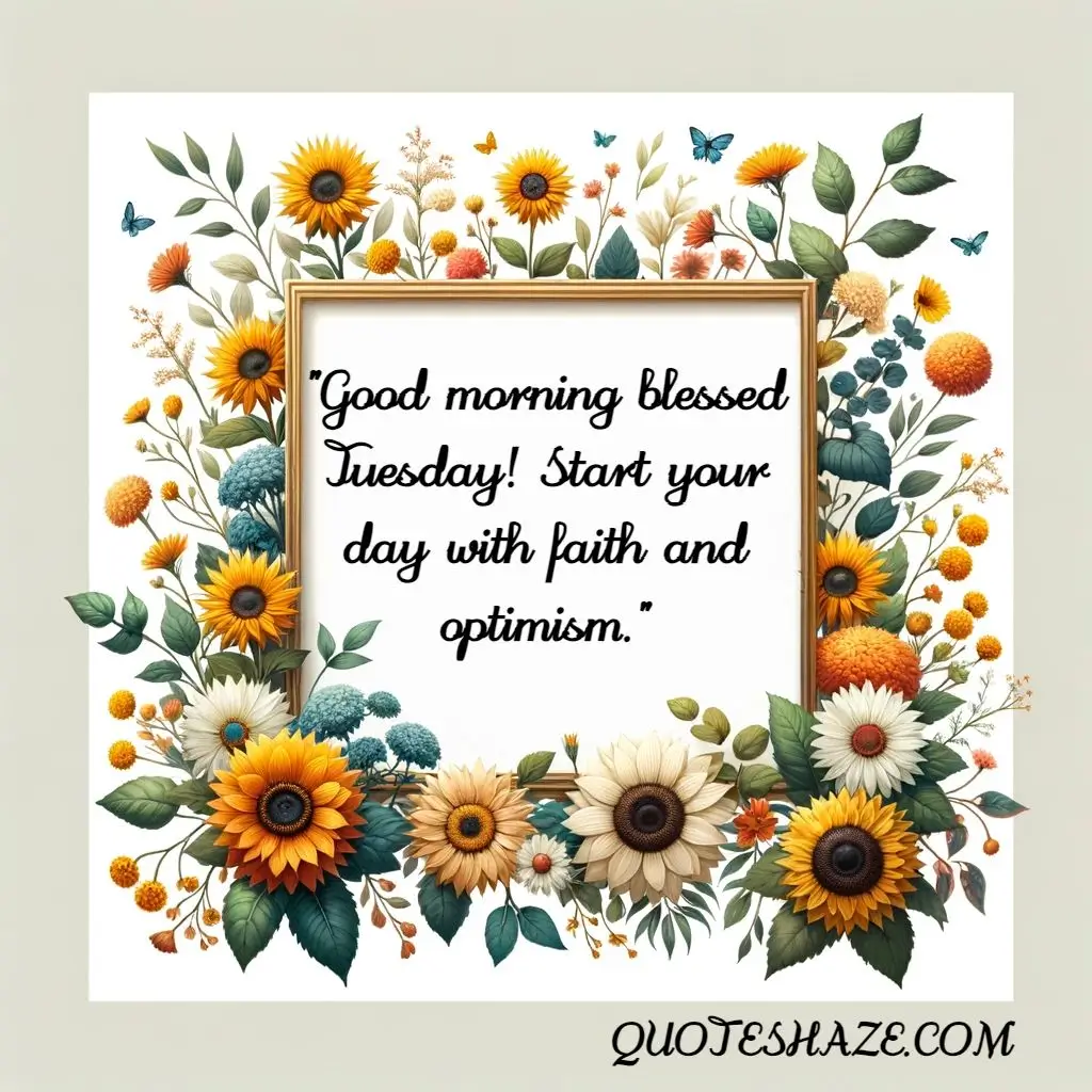 - “Good morning blessed Tuesday! Start your day with faith and optimism.”