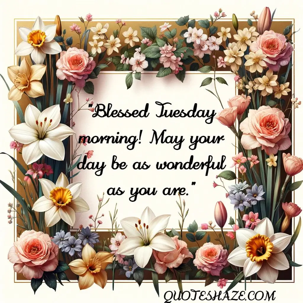 - “Blessed Tuesday morning! May your day be as wonderful as you are.”