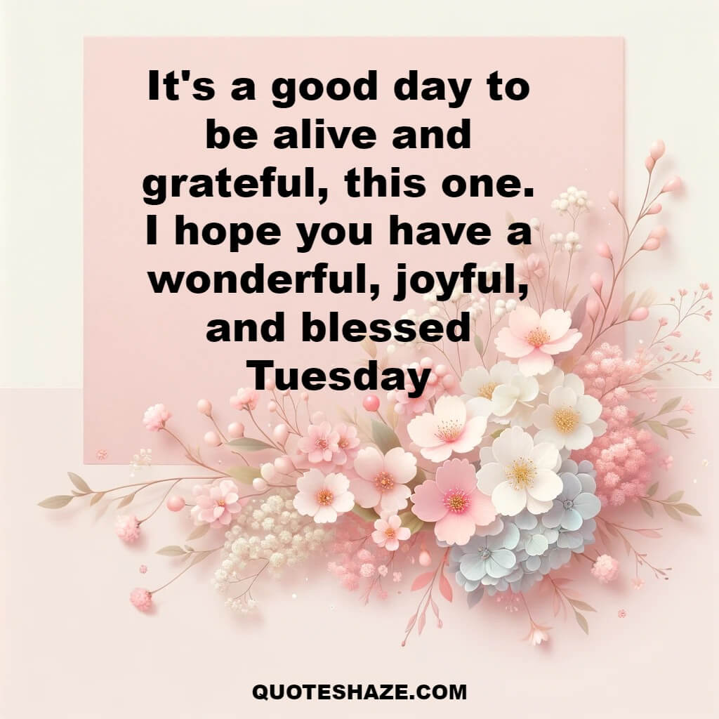 - “Happy blessed Tuesday! Let your heart be filled with joy and gratitude.”